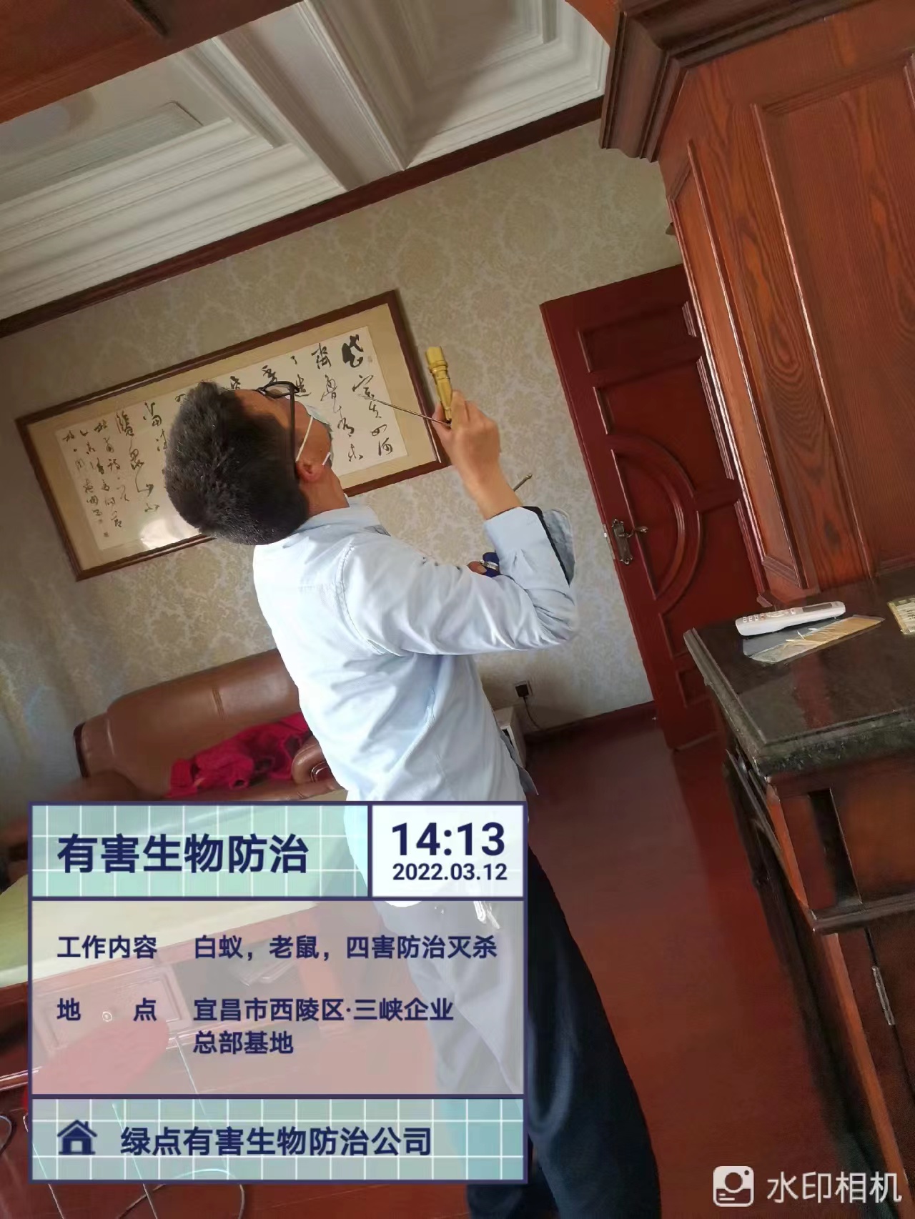 【宜昌市绿点有害生物防治有限公司】在三峡企业总部白蚁防治施工