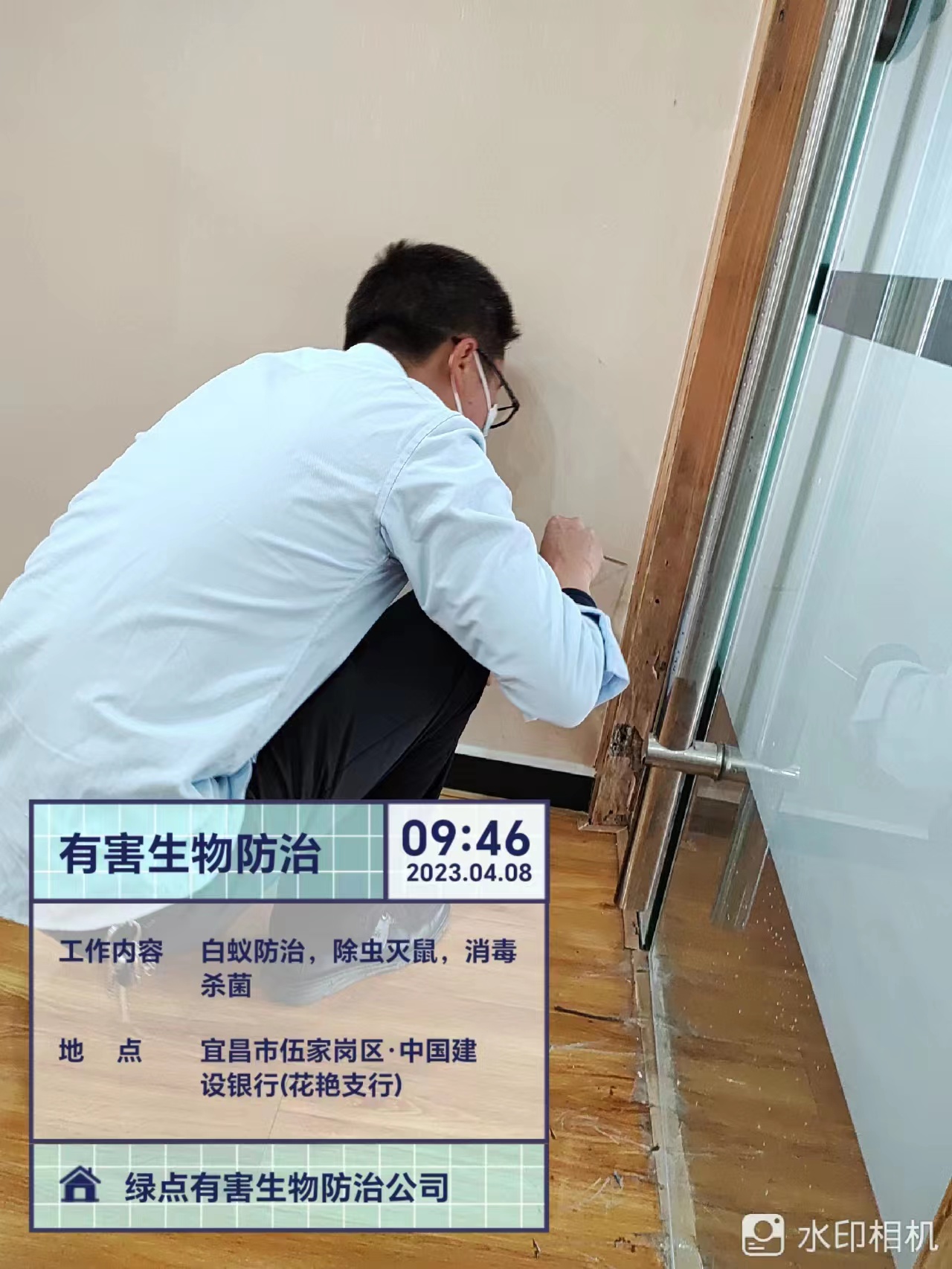 【宜昌市绿点有害生物防治有限公司】在银行白蚁防冶施工